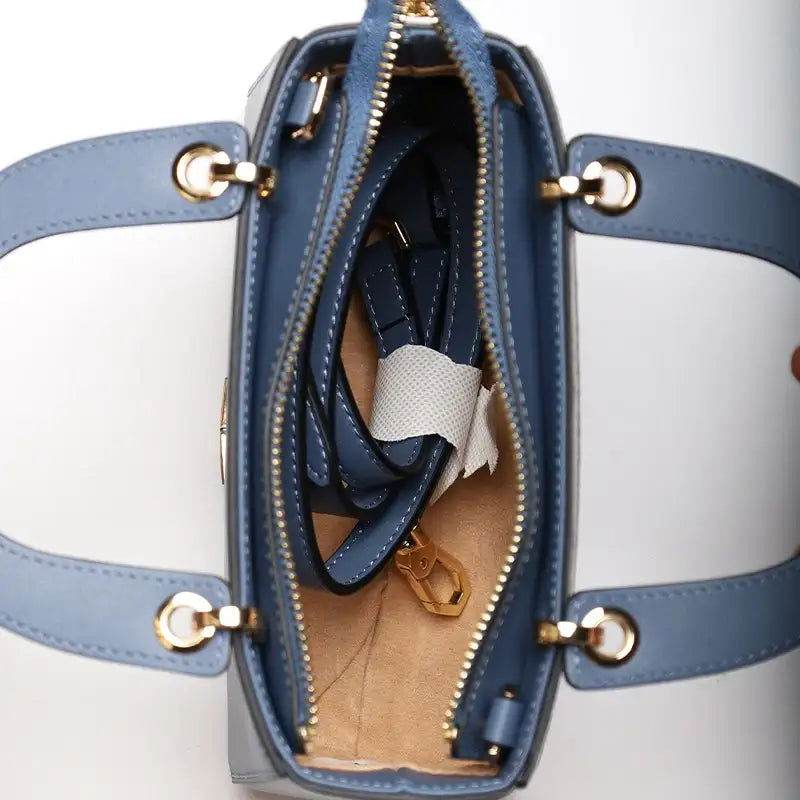 Handcrafted Embroidery Leather Handbag Blue and White Porcelain