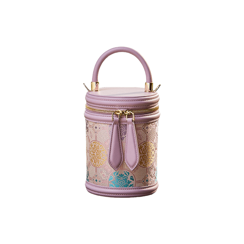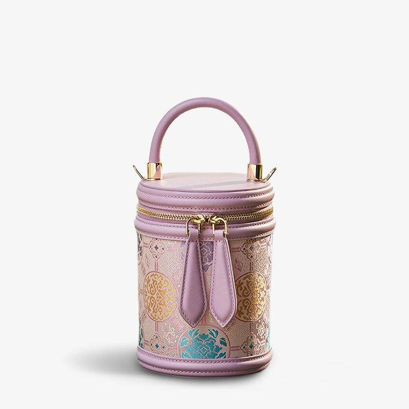 Song Brocade Leather Bucket Cylinder Bag
