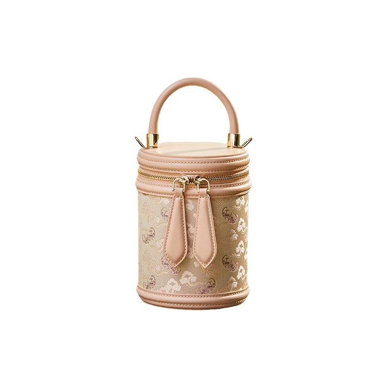 Song Brocade Leather Bucket Cylinder Bag